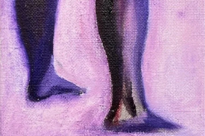 PERNAS PRÁ QUE TE QUERO II, 2023 SÉRIE ME LEVA ÓLEO SOBRE LINHO CRU 10 X 18 CM